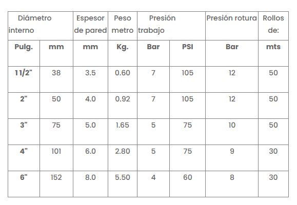 Manguera de alta flexibilidad y liviana especialmente para conductores de aire, extractores industriales, ventilación industriales y succión de polvo de madera,rastrojos de trigo, maíz, arroz, etc. Superficie corrugado interno y externo – Compuesto de PVC y espiral rígido- Resistente a la abrasión, corrosión – Resiste temperaturas hasta 60°.