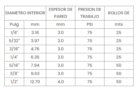 Manguera compuesta de nitrilo con lona exterior color negro, superficie lisa interna resistente al contacto constante con la gasolina, petróleo y derivados. Trabaja temperaturas de -15°C hasta 60°C.