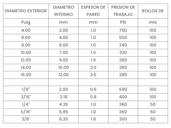 Tubería de nylon diseñada para el transporte de aire comprimido, agua, aceite, productos químicos, etc.